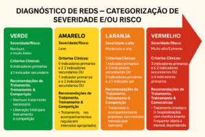 Antes de considerar cada um dos sinais e sintomas acima, é preciso excluir outras causas potenciais para cada indicador de REDs. Os atletas são então classificados nas bandeiras verde, amarela e vermelha, o que indica a conduta a ser adotada em cada caso, conforme a imagem abaixo.